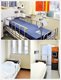 病状に合わせて、保護室・観察室・多床室と段階的に移動が可能です。精神的に不安定な方が初めに入院される病棟です。1階はICUを含む身体管理に重点を置いた設備があり、専門的な処置が必要な方が入院されています。
